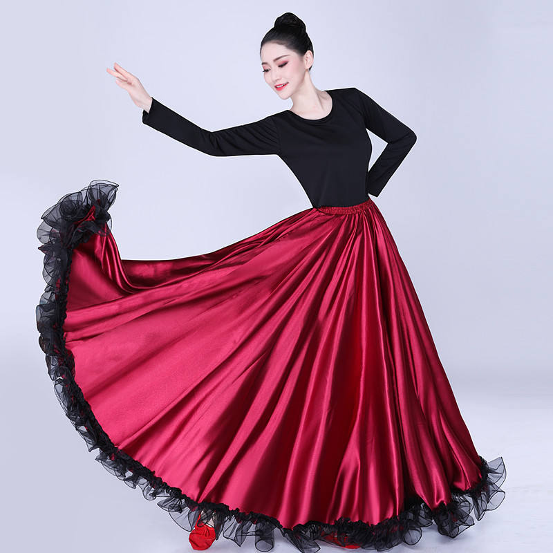 Gonna da ballo flamenco spagnola rossa a 540 gradi con volant, costume da danza del ventre per donna
