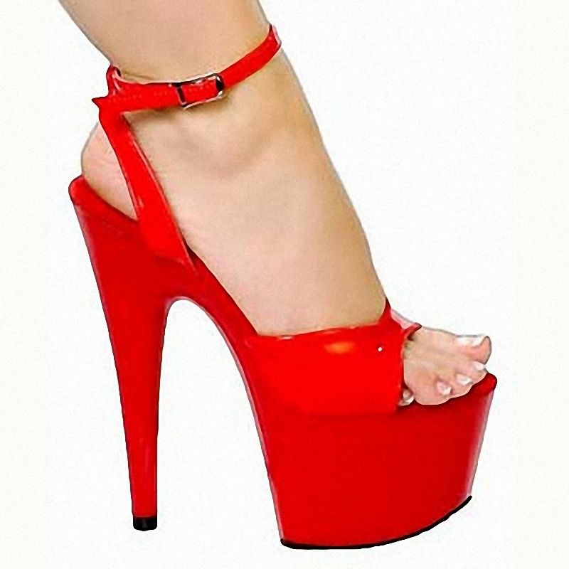 Sandali Rossi con Tacco Sottile Super Alto 17 cm da Donna, Estivi, Peep Toe, Sexy, con Fibbia Grande, per Ballerine Esotiche, Feste, Pole Dance
