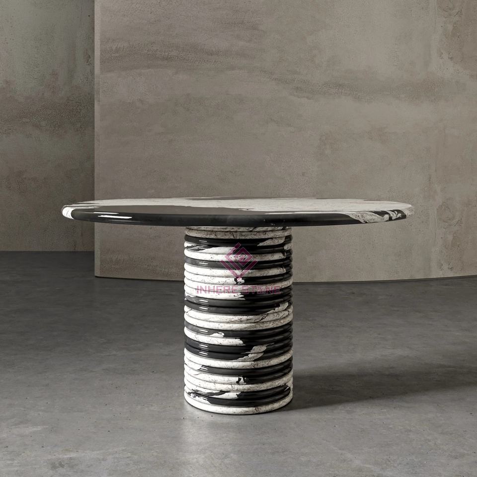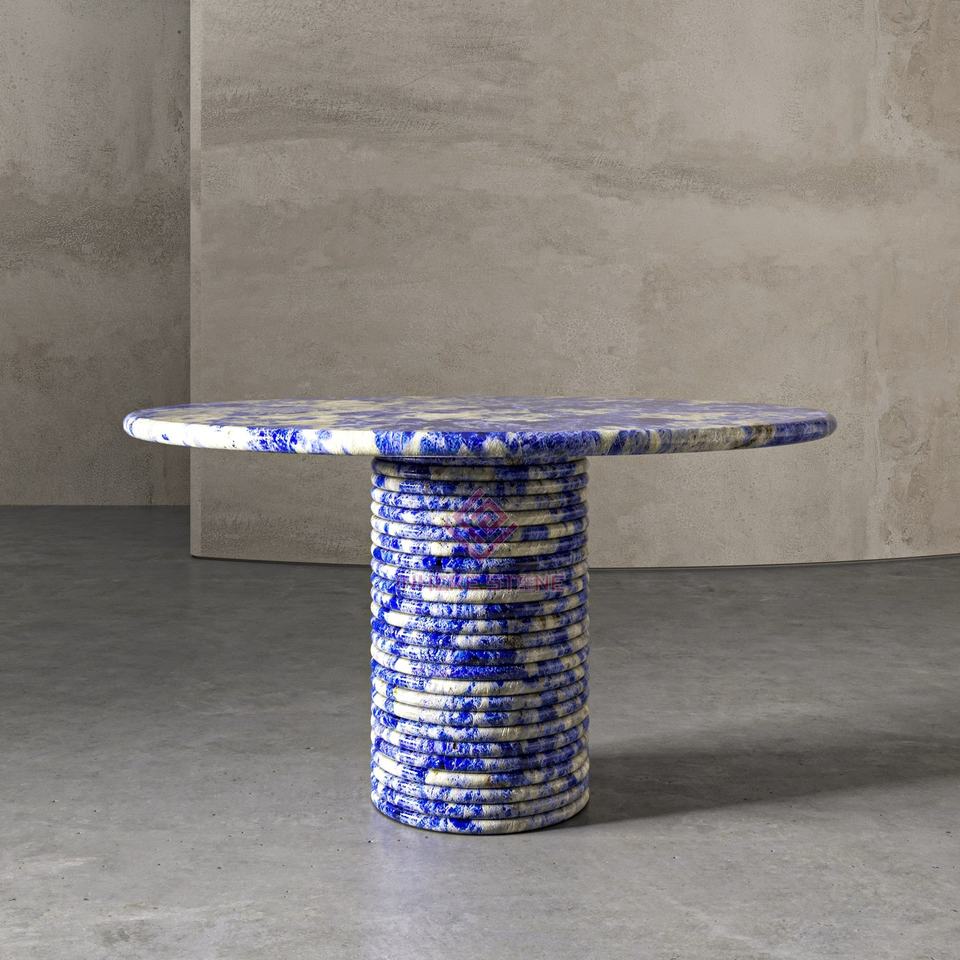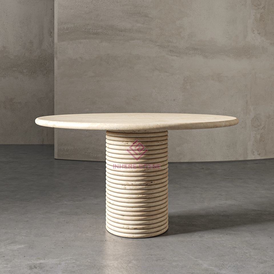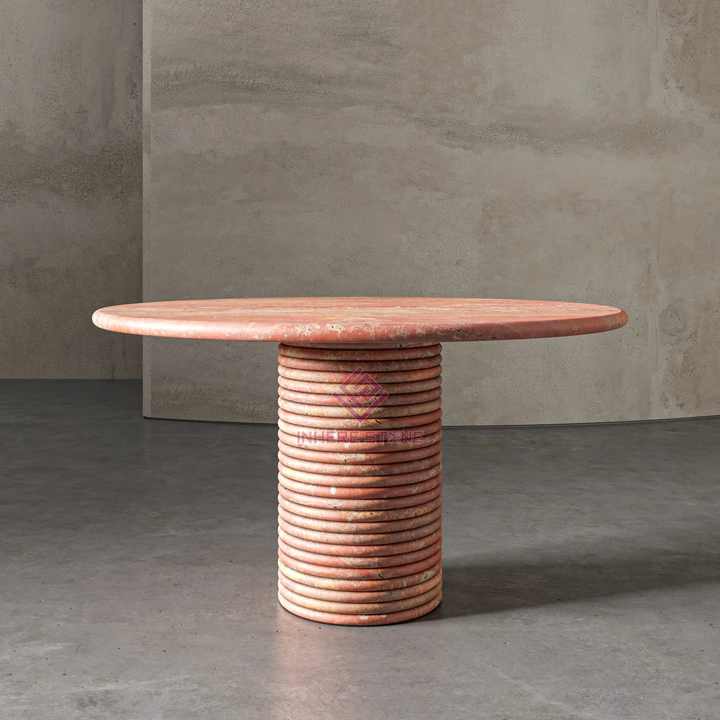 Nome del prodotto:Tavolo da pranzo in travertino rosso con Base ad anelli per cucina di design