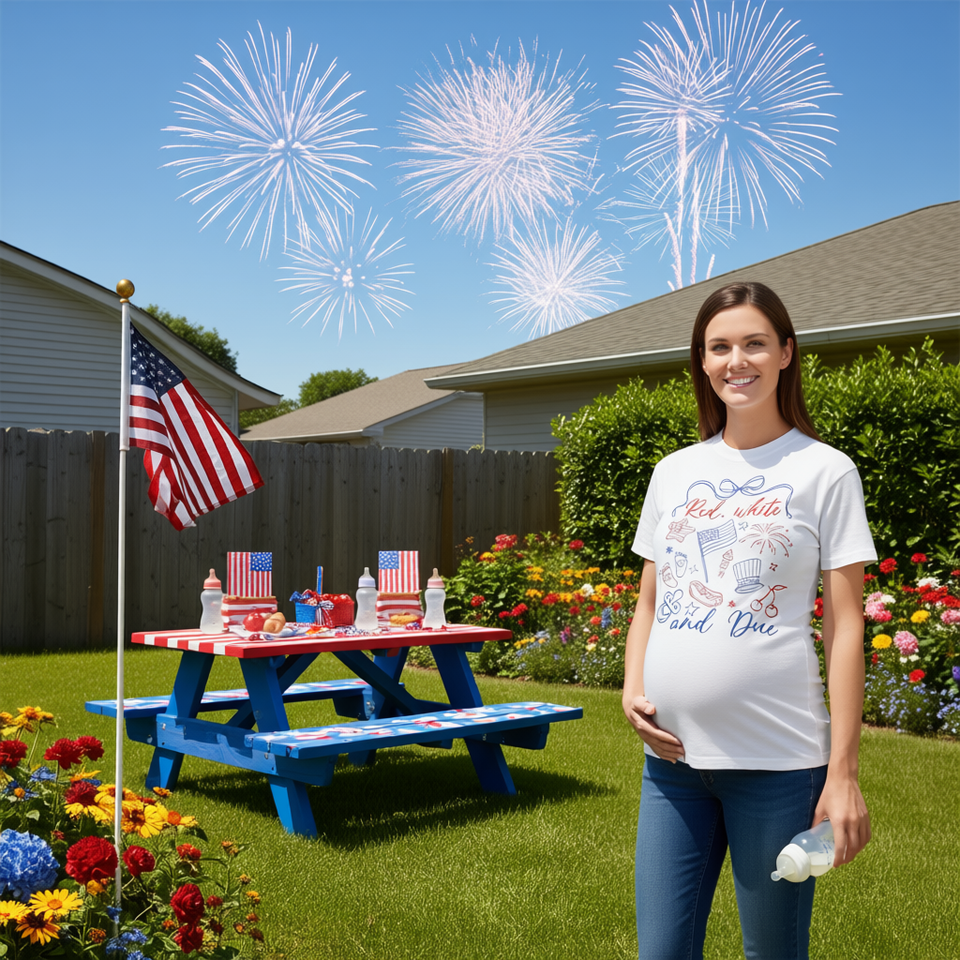 T-shirt rossa, bianca e con motivo del 4 luglio, per la gravidanza, l'estate, USA, mamma, t-shirt da mamma