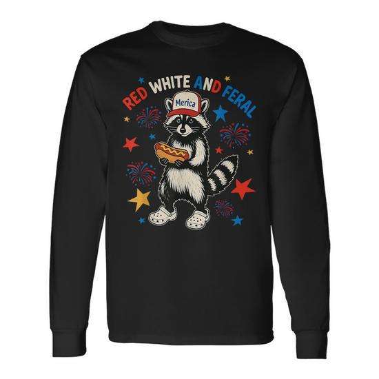 T-shirt a maniche lunghe con stampa digitale di procione rosso, bianco e selvaggio, girocollo, unisex, per adulti, promozionale