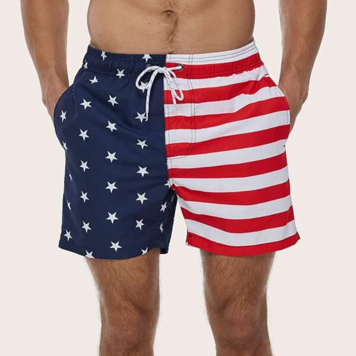Pantaloncini da mare e costumi da bagno rosso bianco e blu