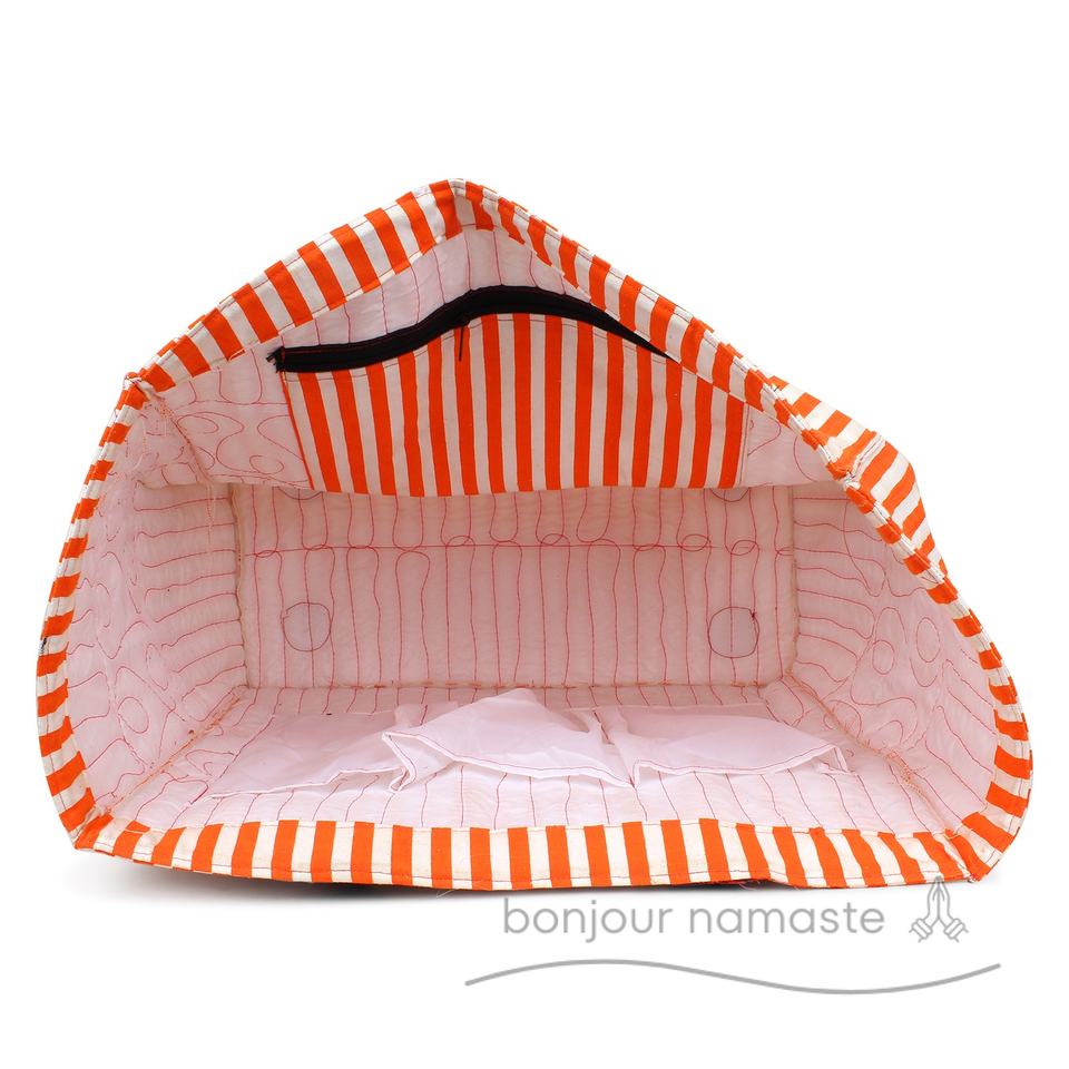 Red White Stripes Canvas Tote Bag Zipper Preppy Style Beach Fashion Accessory | Bonjour Namaste Brand | Low MOQ Wholesale |