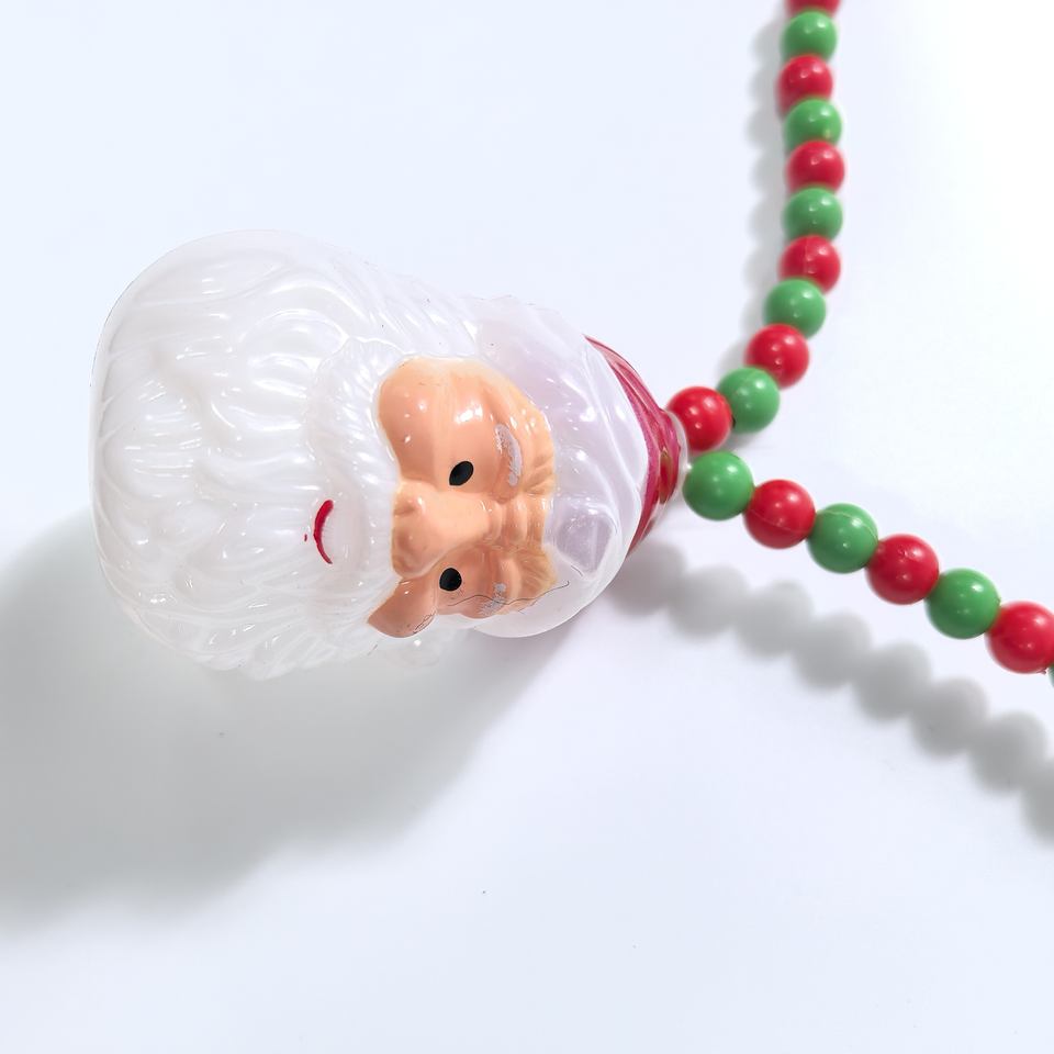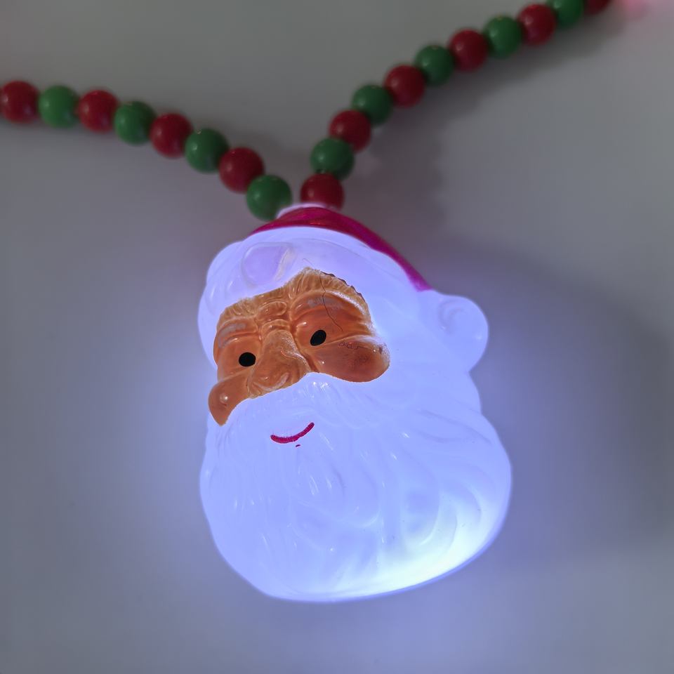 Red and Green Bead LED Glowing Santa Claus Necklace Decoration for New Year and Christmas Party