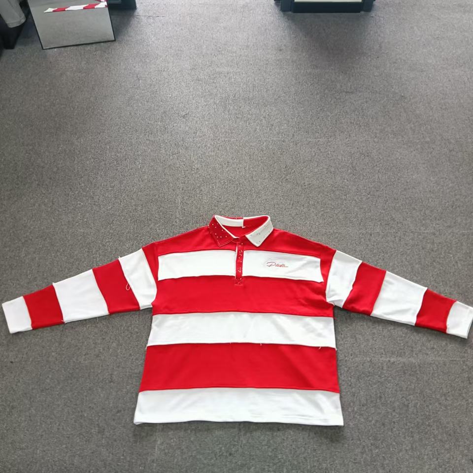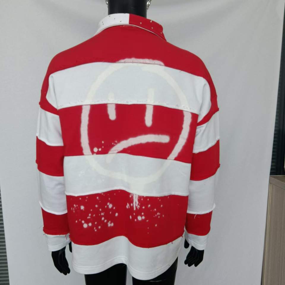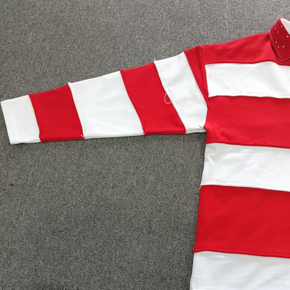 T-shirt con stampa digitale personalizzata t-shirt con scollo a V t-shirt a righe bianche a maniche lunghe con logo personalizzato per uomo