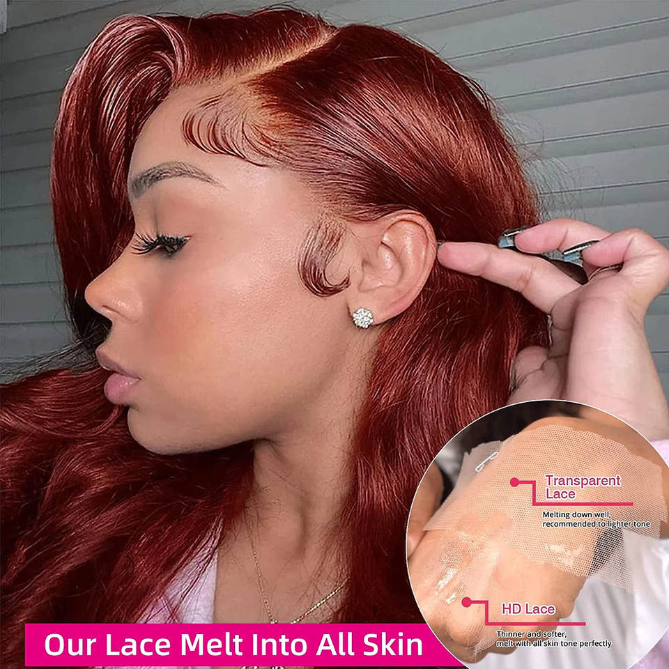 Parrucca in Capelli Umani Vergini Remy al 100% HD 13x6 Marrone Rossastro, Texture Liscia, Baby Hair, Lunghezze Estese 12-34 Pollici 30
