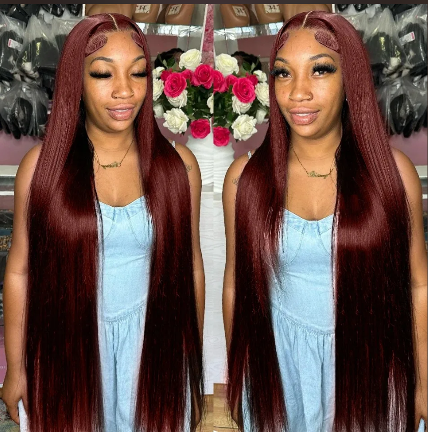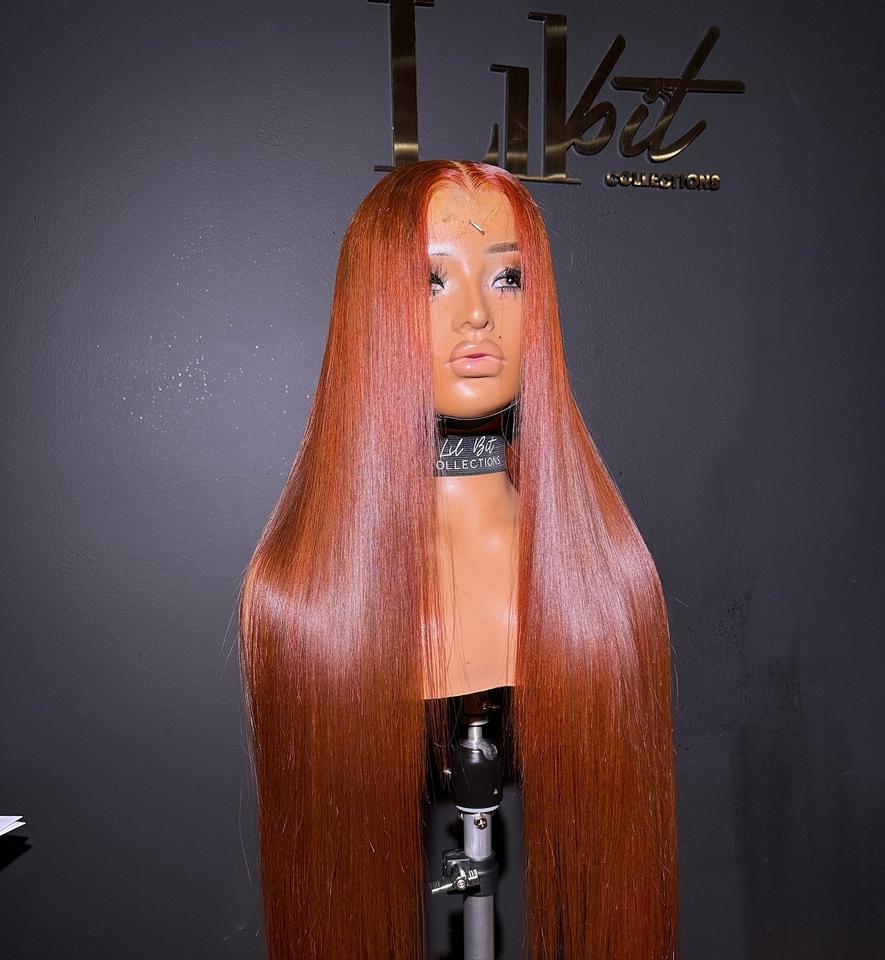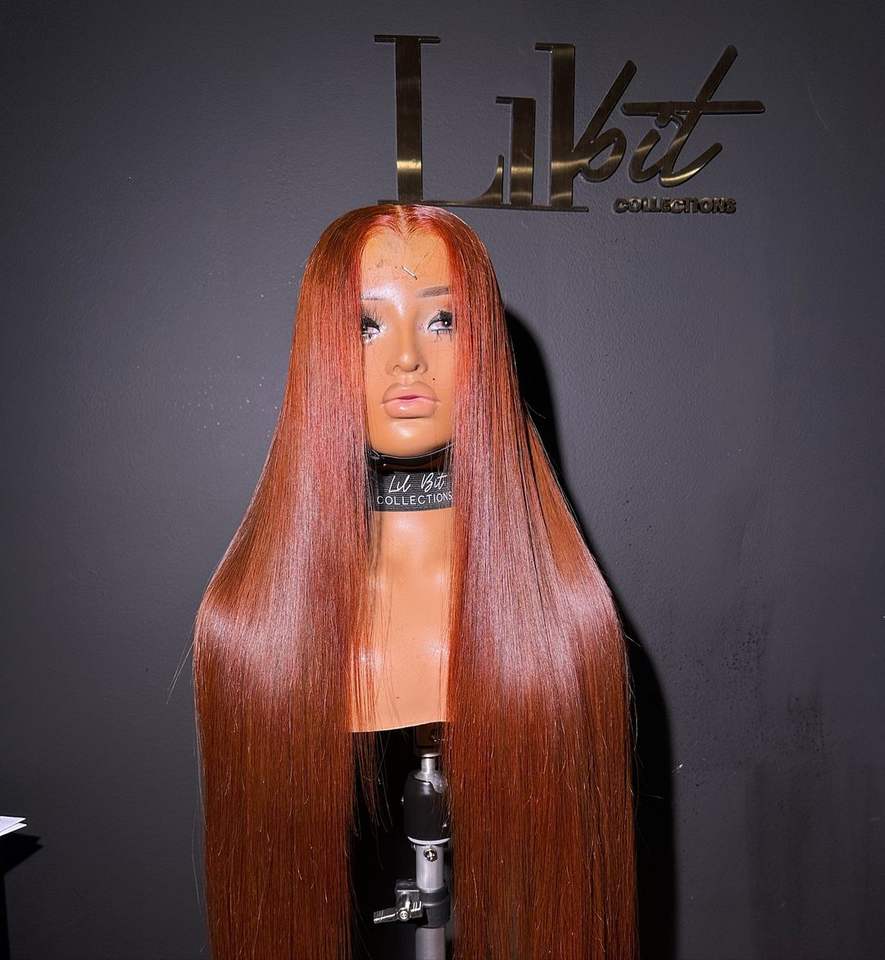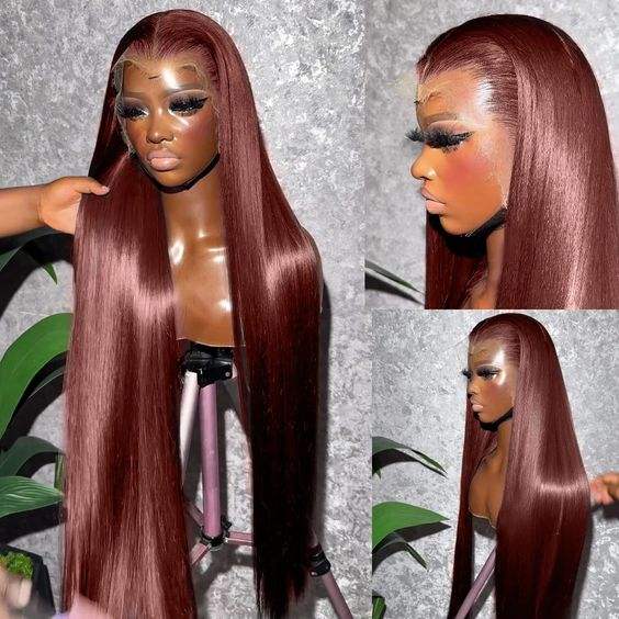 Parrucca capelli umani castano rossastro ramata capelli brasiliani lisci e lisci parrucche frontali 13x4 trasparenti HD in pizzo con capelli da bambino