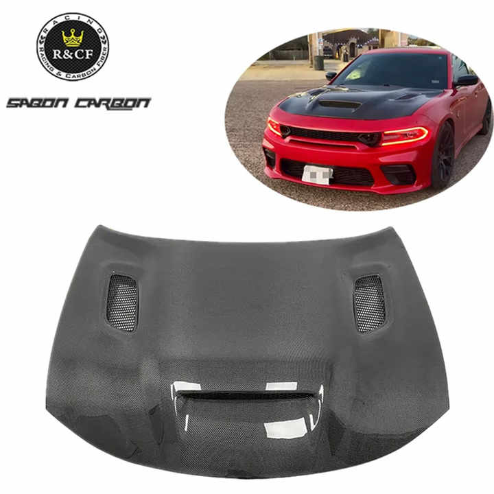 Cofano Motore in Fibra di Carbonio Leggero Stile Redeye, Compatibile con Dodge Charger dal 2015 in poi
