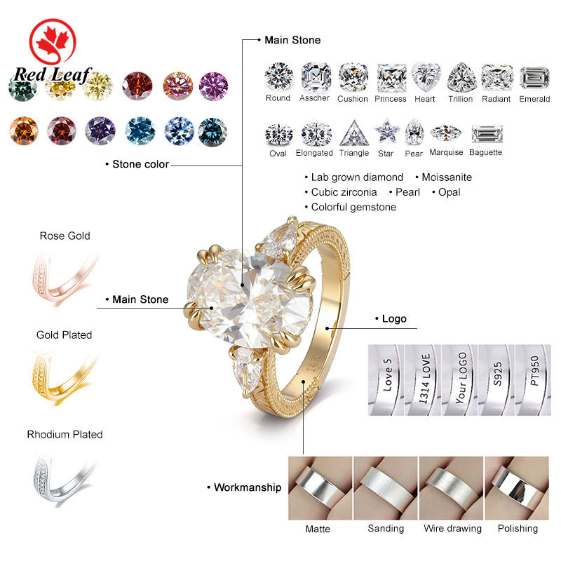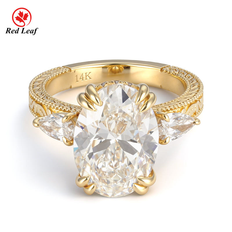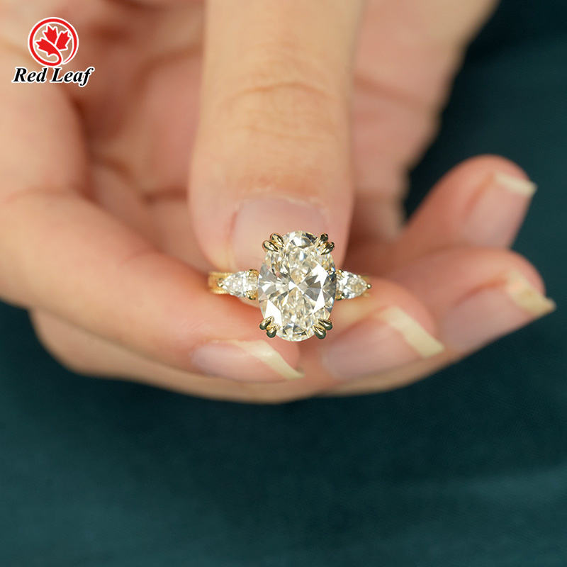 Anello con Diamante Sintetico Redleaf con Certificato IGI, 1CT 2CT 5CT, Taglio Ovale, Oro 10K 14K 18K, Anello Nuziale Personalizzato, Anello di Fidanzamento con Tre Pietre