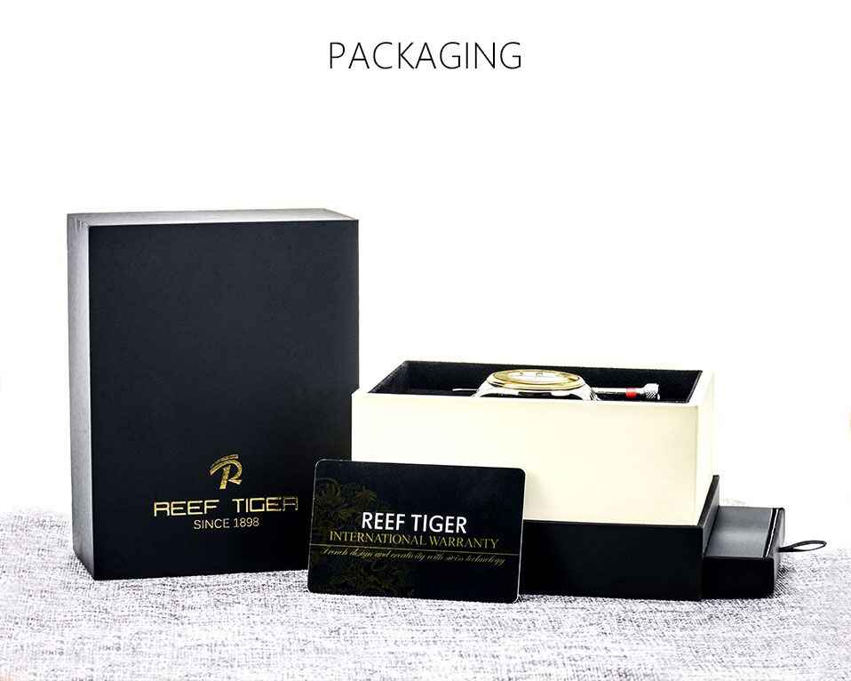 Reef Tiger Top Brand Luxury Dress Watch Men Yellow Gold Genuine Leather Strap Automatic Watch Waterproof Date RGA823