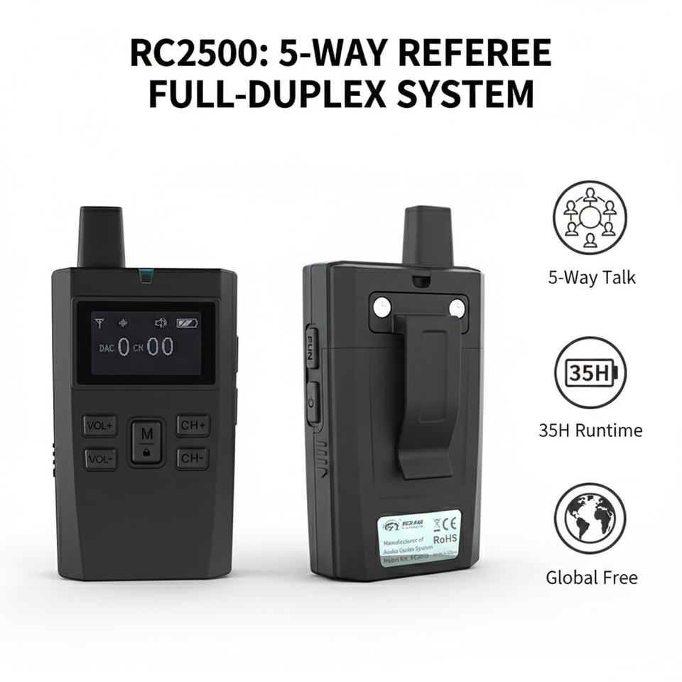 Sistema di Interfono per Arbitri, Comunicazione Full Duplex per 5 Persone, Portata 200M, Radio Wireless 50CH per Partite di Calcio