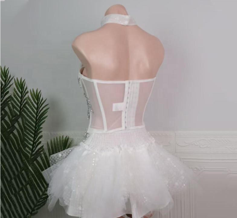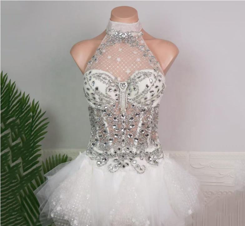 Costume da Palcoscenico per Gruppo di Ragazze Stile Raffinato con Strass Luccicanti e Dettagli a Forma di Sirena