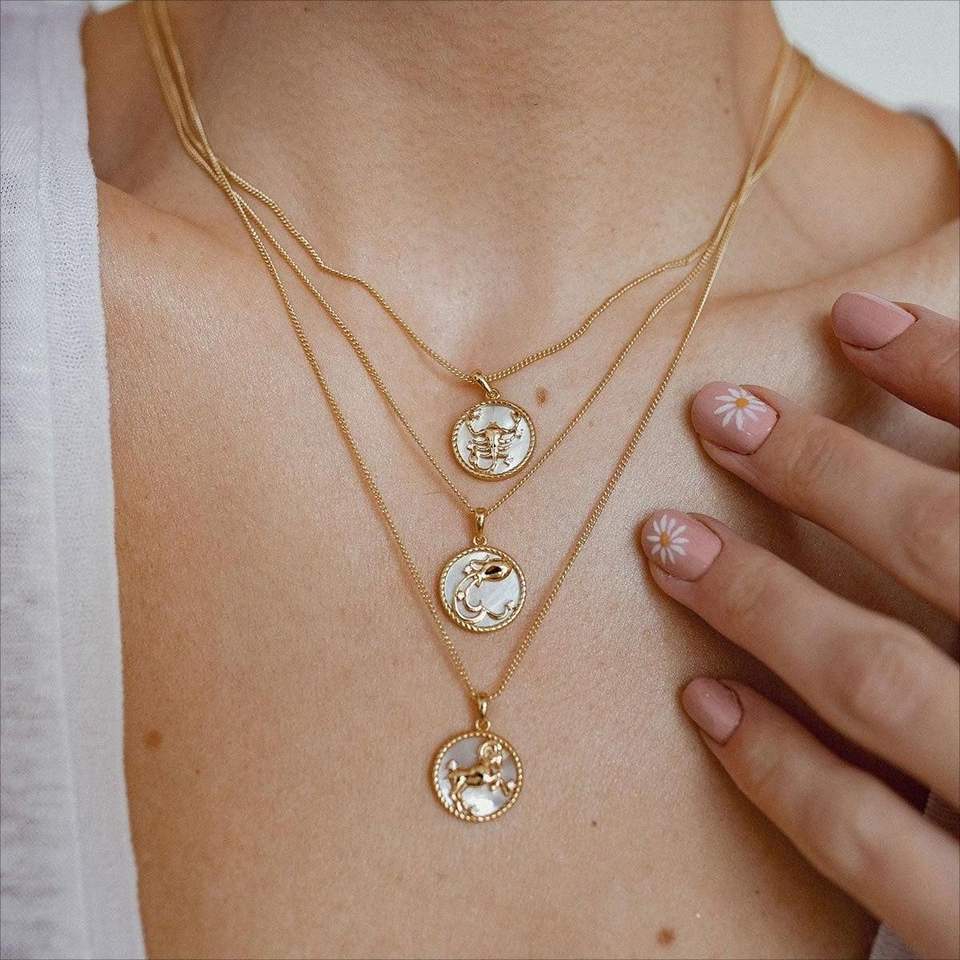 Collana con Ciondolo Circolare dei 12 Segni Zodiacali, Zircone e Conchiglia, Creativa e Semplice, Impermeabile, in Acciaio al Titanio, Gioiello per Feste