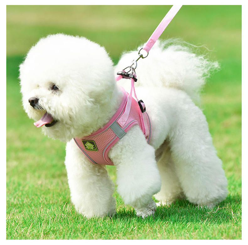 Set Guinzaglio e Pettorina Riflettente Anti-Trazione, Imbottito, Regolabile e Traspirante in Morbida Rete per Cani di Piccola Taglia