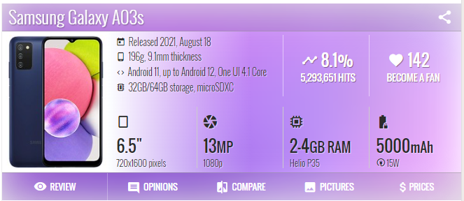 Telefoni Ricondizionati 99% Nuovi Sbloccati, Smartphone Android di Grado A per Samsung A03S