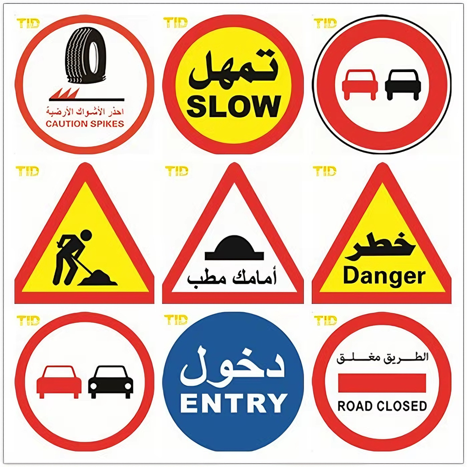 Segnaletica Stradale Araba Regionale - Cartelli Riflettenti per Pericolo/Stop/Limiti di Carico per Camion nei Paesi del GCC