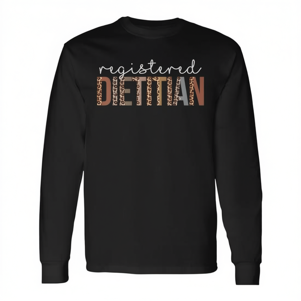 T-shirt a maniche lunghe per il riconoscimento dei dietitian registriti, per operatori sanitari, con design leopardato, prodotto promozionale