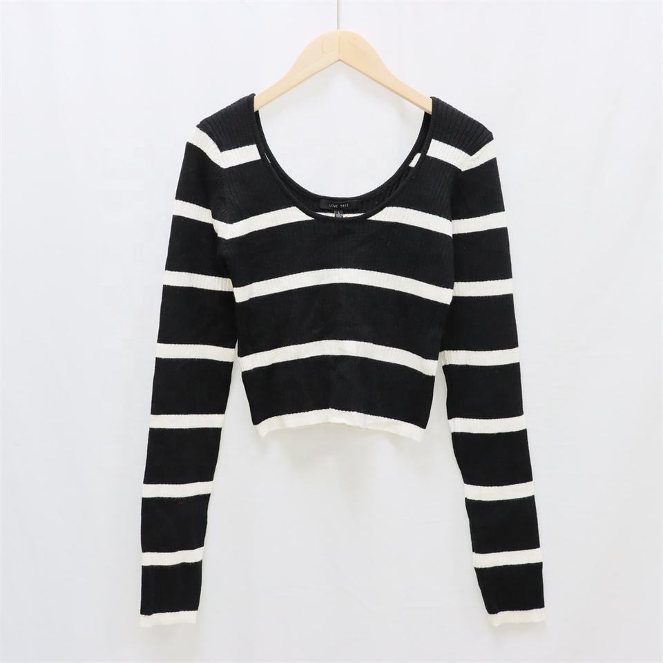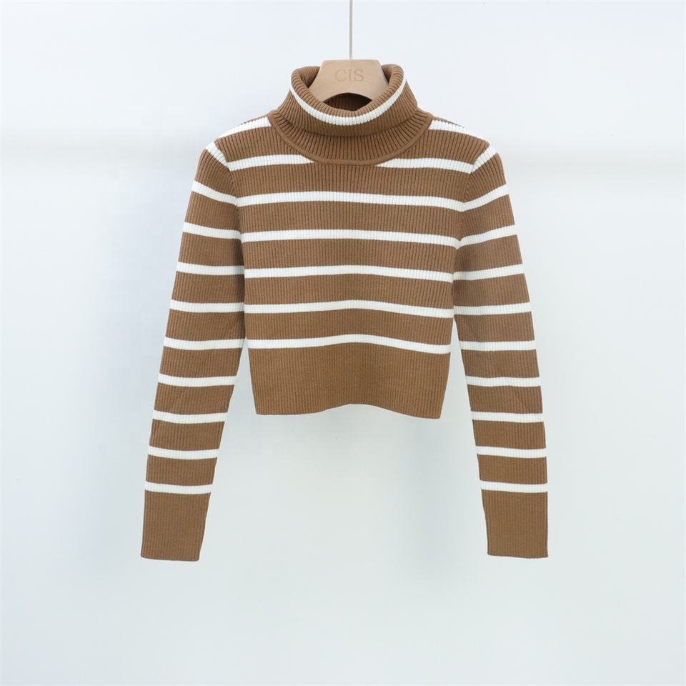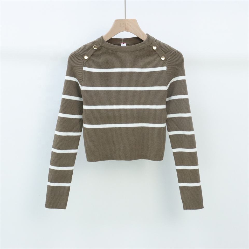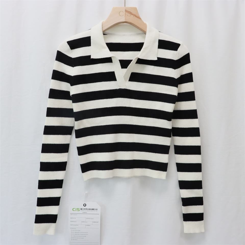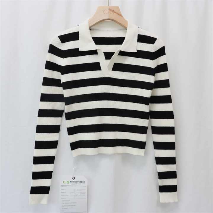 Maglione da Donna Personalizzato in Maglia a Coste a Righe con Collo a Polo e Scollo a V, Maniche Lunghe, Anti-pilling, Casual Autunnale - Produttore