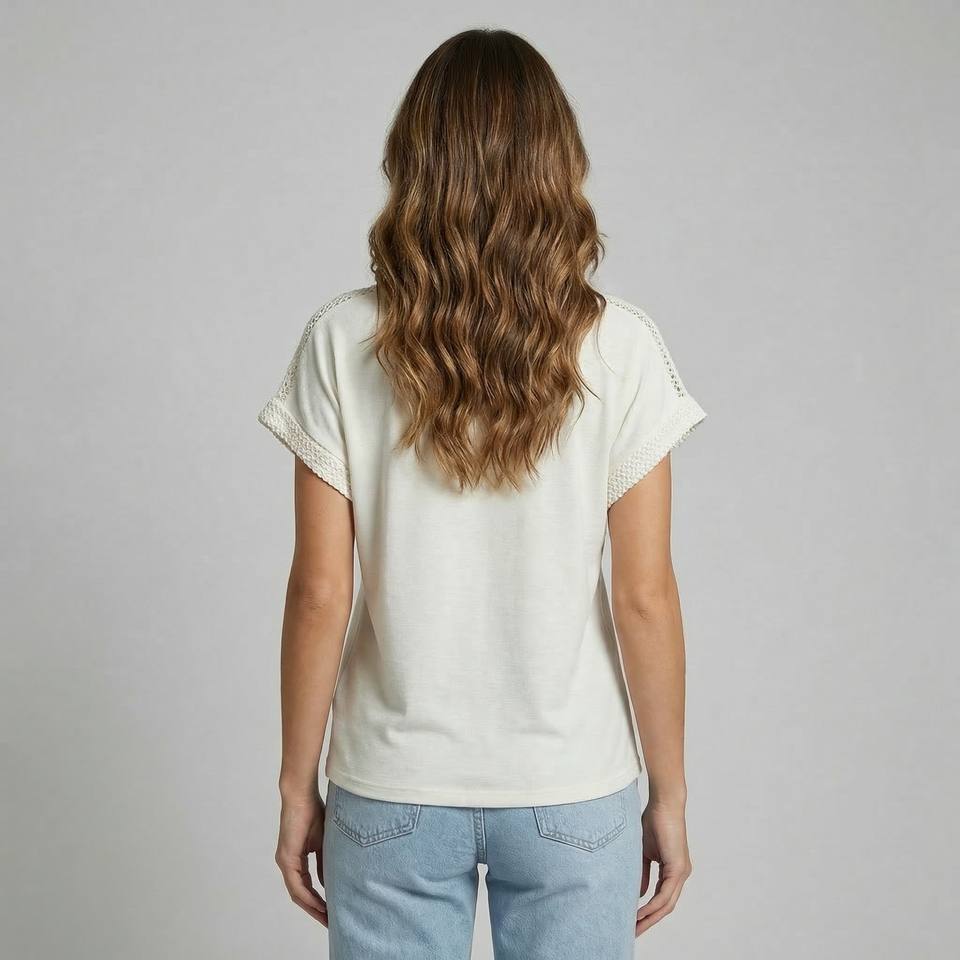 Blusa da Donna Casual a Girocollo Vestibilità Regolare, Tinta Unita, con Maniche a Pipistrello in Rete e Diamanti, Traspirante, in Viscosa/Poliestere, Corta, Primavera/Estate