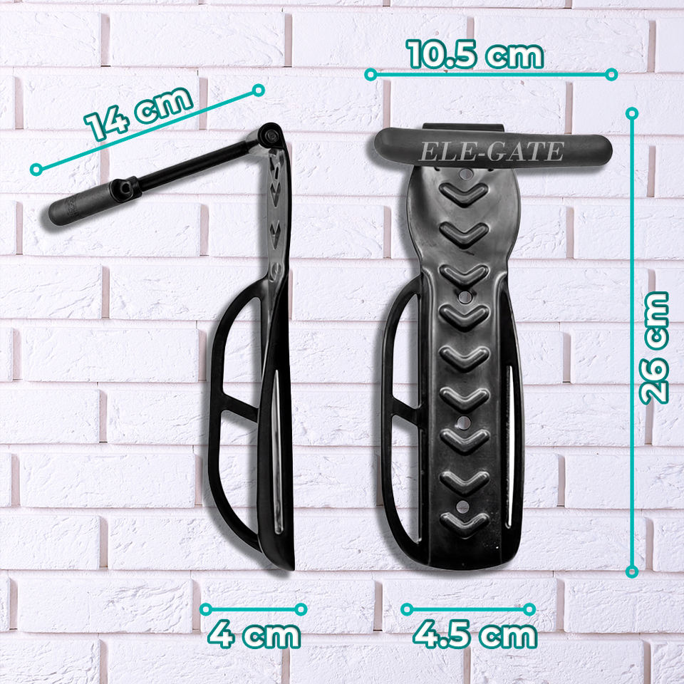 Non-slip design, Rubber tire rest, Compact design, Wall mount