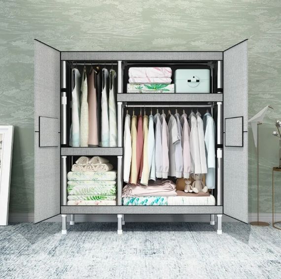 Tubo in acciaio rinforzato doppio o singolo armadio domestico tessuto ispessito mobili camera da letto Design semplice
