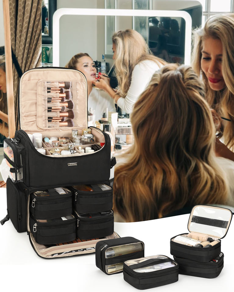 Valigia per Trucco Relavel con Ruote a 360 Gradi, Trolley per Cosmetologia, Valigia da Viaggio per Parrucchieri con Manico Estraibile