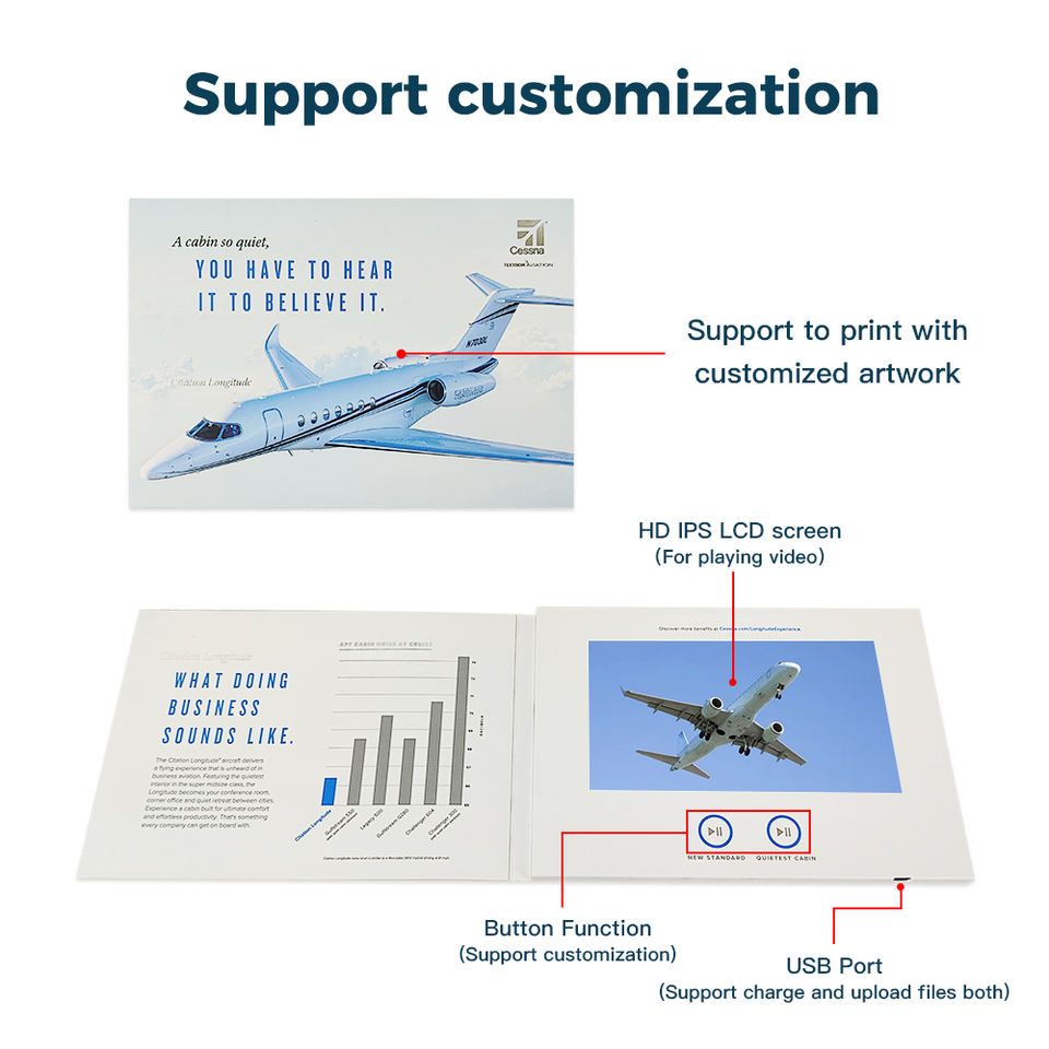 Carta pieghevole affidabile buona tasca bronzing business lcd film mailer marketing libro musicale luxury invito lettore multimediale