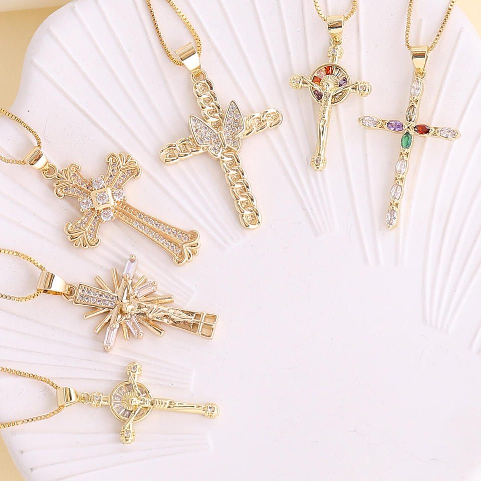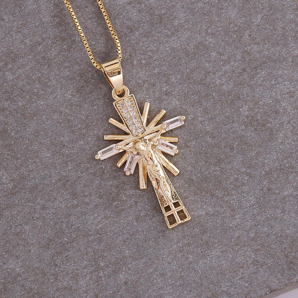 Collane Classiche Religiose in Rame Placcato con Croce per Uomo e Donna, Catene 18k con Pietre di Zirconia
