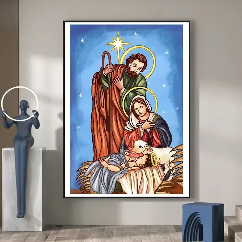 Religious Family Living Room Wall Art Oil Paintings and Bible Posters with Jesus Cross Abstract Motifs and Christian Quotes