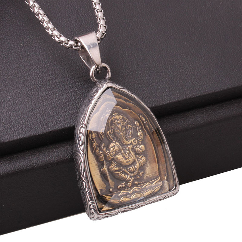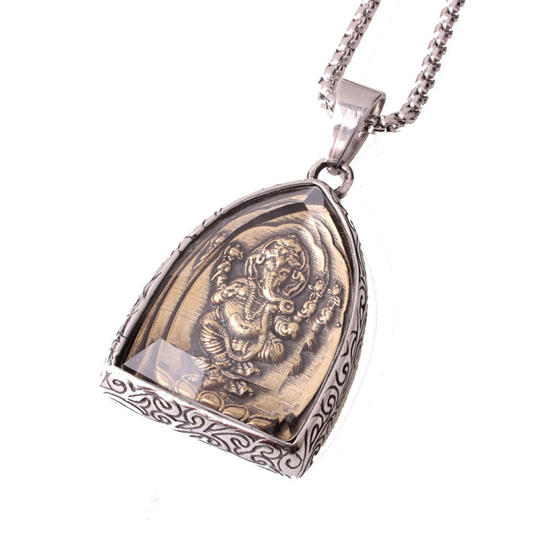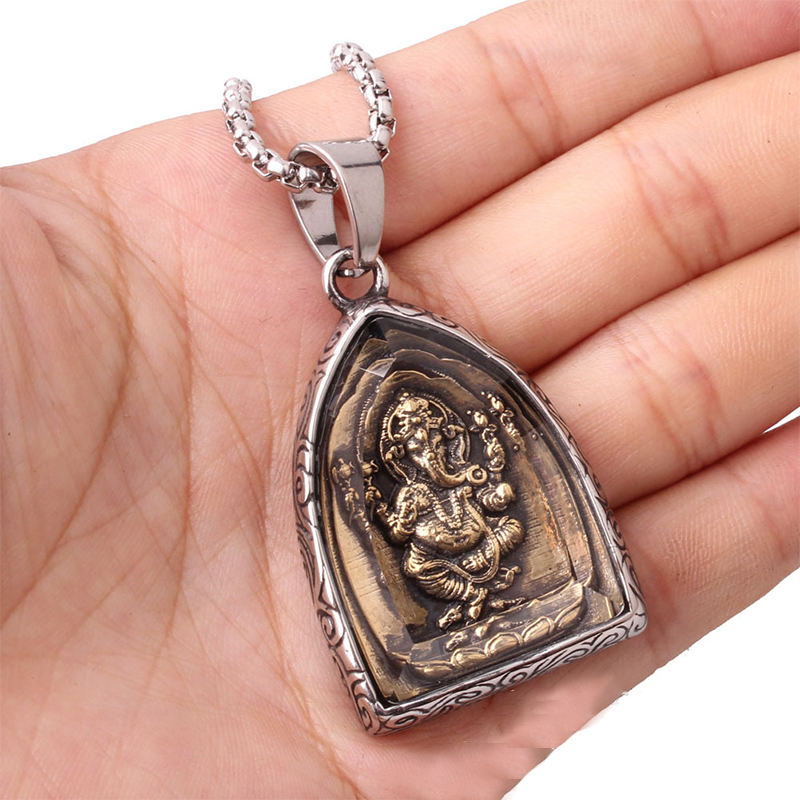 Stile religioso intagliato induismo collane amuleto copertura di vetro religione rilievo elefante Ganesha collana pendente per gli uomini
