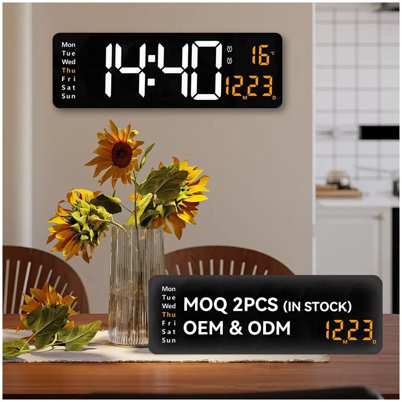 Orologio da Parete Digitale a LED Grande da 16 Pollici con Display Calendario Remoto, Impermeabile, per Interni, con Sveglia e Ricarica USB