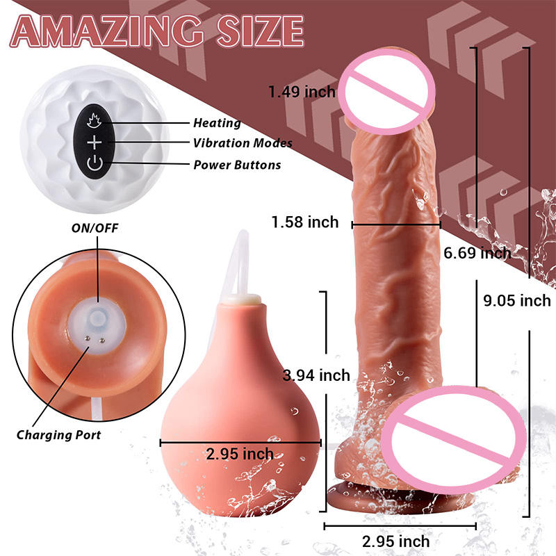 Telecomando 9 pollici Silicone vibrante riscaldamento realistico Dildo pene eiaculazione spruzzando enorme Dildo con la lampadina per le donne