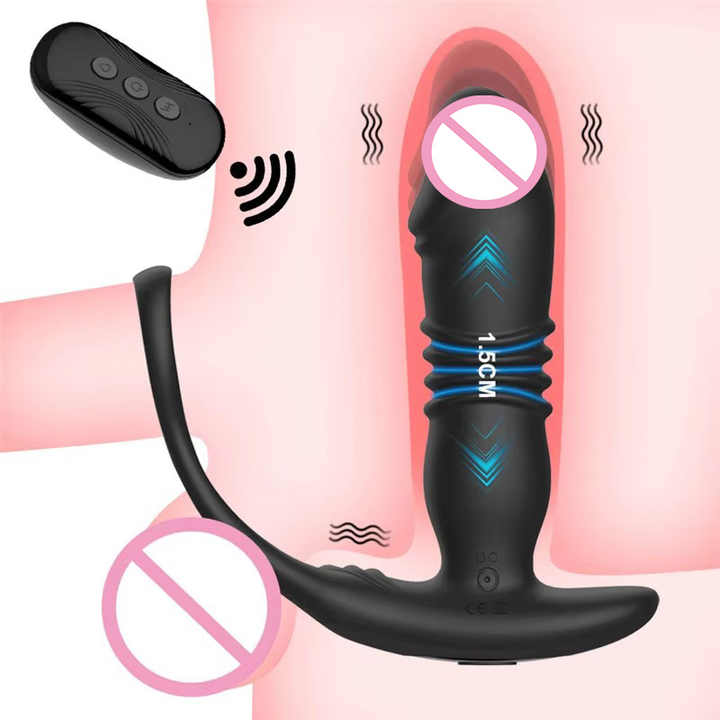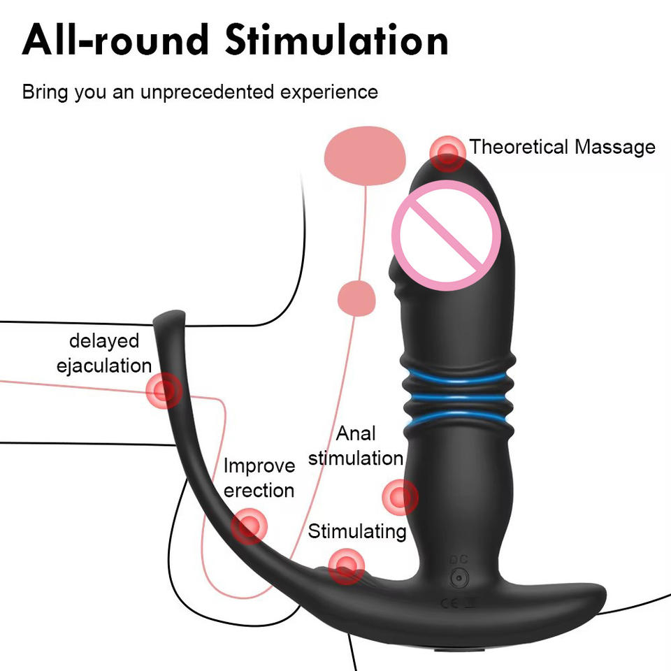 Plug Anale Telescopico con Telecomando e Anello Penieno Vibrante, Massaggiatore Prostatico per Ritardare l'Eiaculazione, Vibratore Anale Maschile