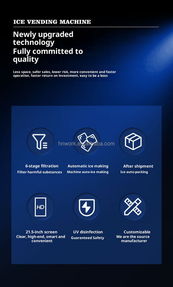 Gestione remota del telefono cellulare di macchine automatiche per l'imballaggio del ghiaccio e distributori automatici di ghiaccio ad osmosi inversa
