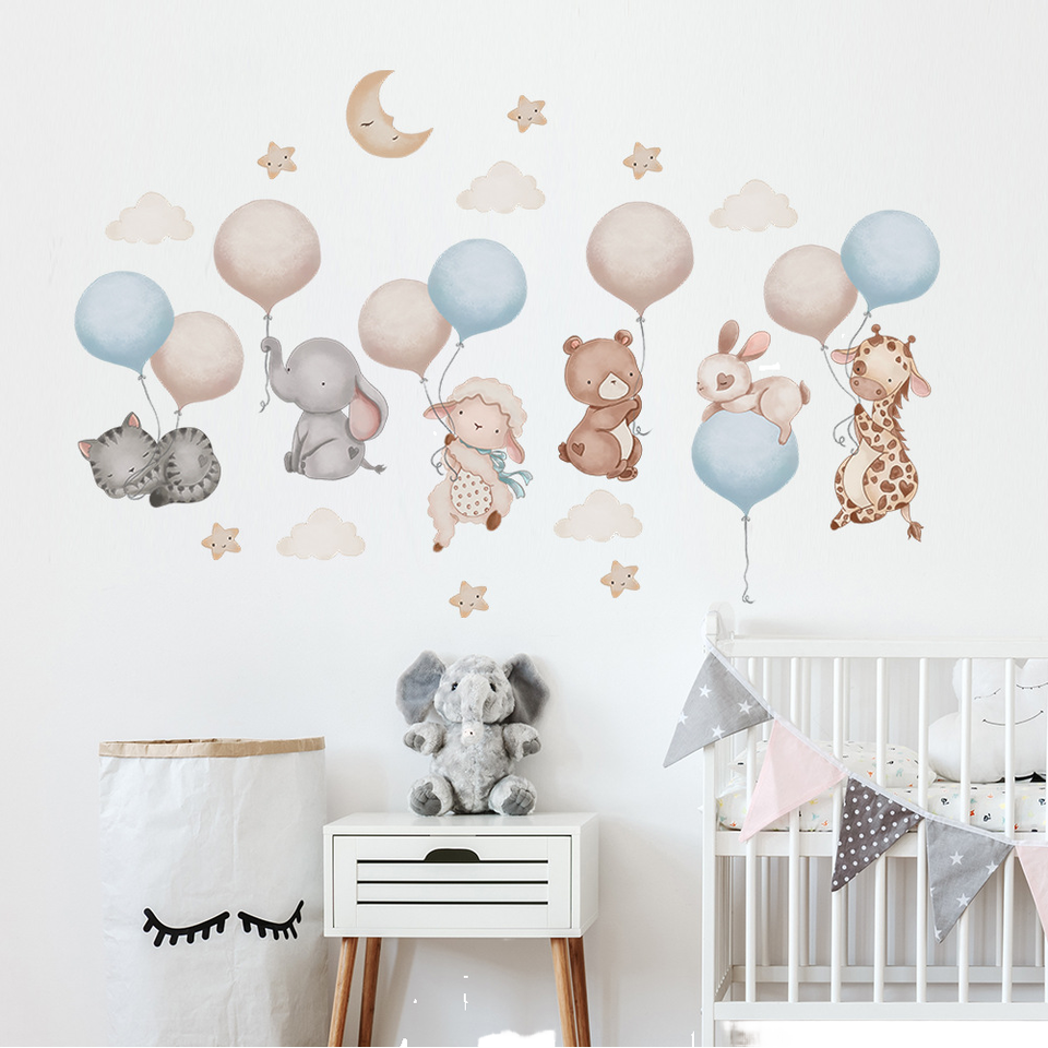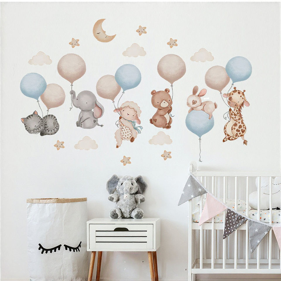 Adesivi Murali Rimovibili con Animali Cartoon e Nuvole in PVC Stampato UV per Camerette dei Bambini e Decorazione Asilo