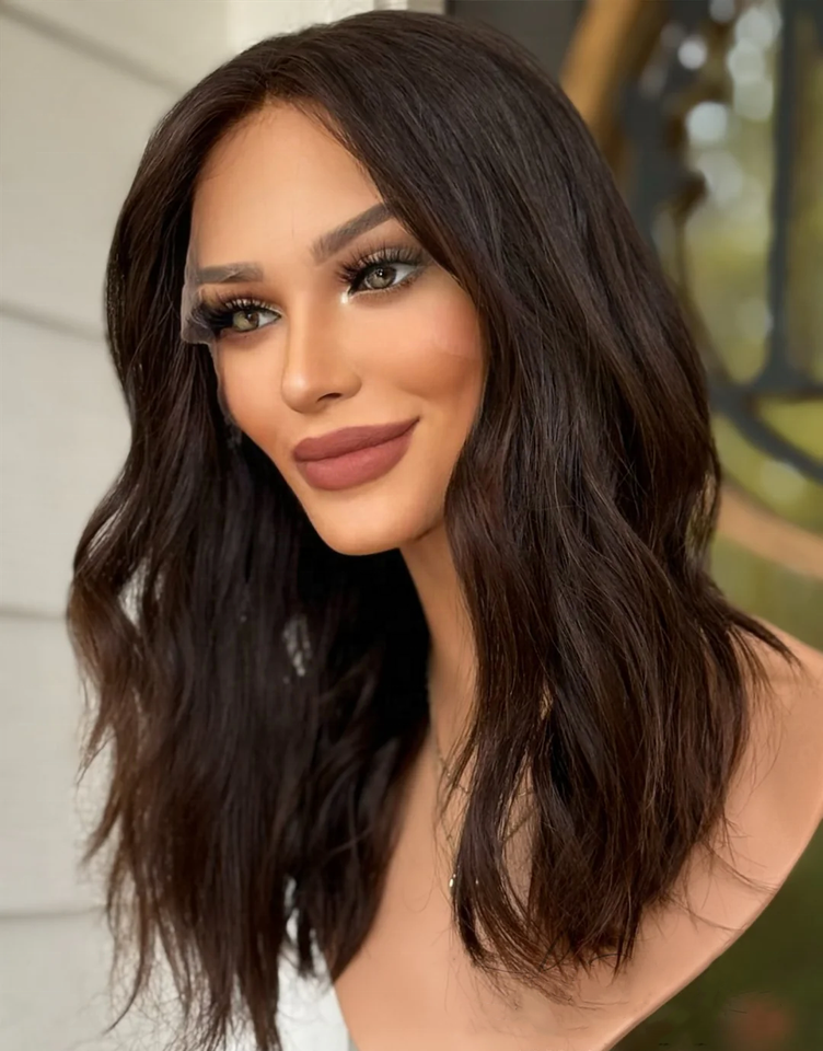 Parrucca Ebraica Realistica con Base Marrone e Riflessi, Capelli Europei Remy, Top in Pizzo Senza Colla, Punte Spesse per Donne