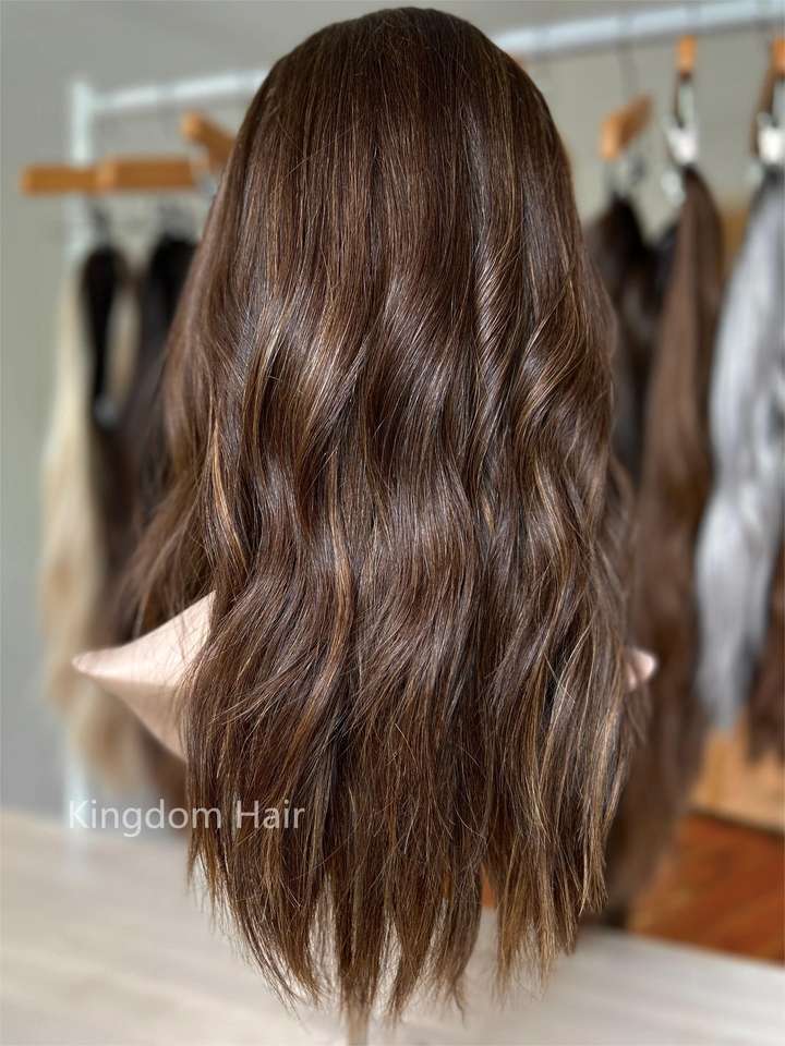 Parrucca Ebraica con Nodi Singoli Annodati a Mano in Capelli Europei Remy, Top in Pizzo, Colore Biondo Caldo con Riflessi, Parrucca Frontale in Pizzo per Donne