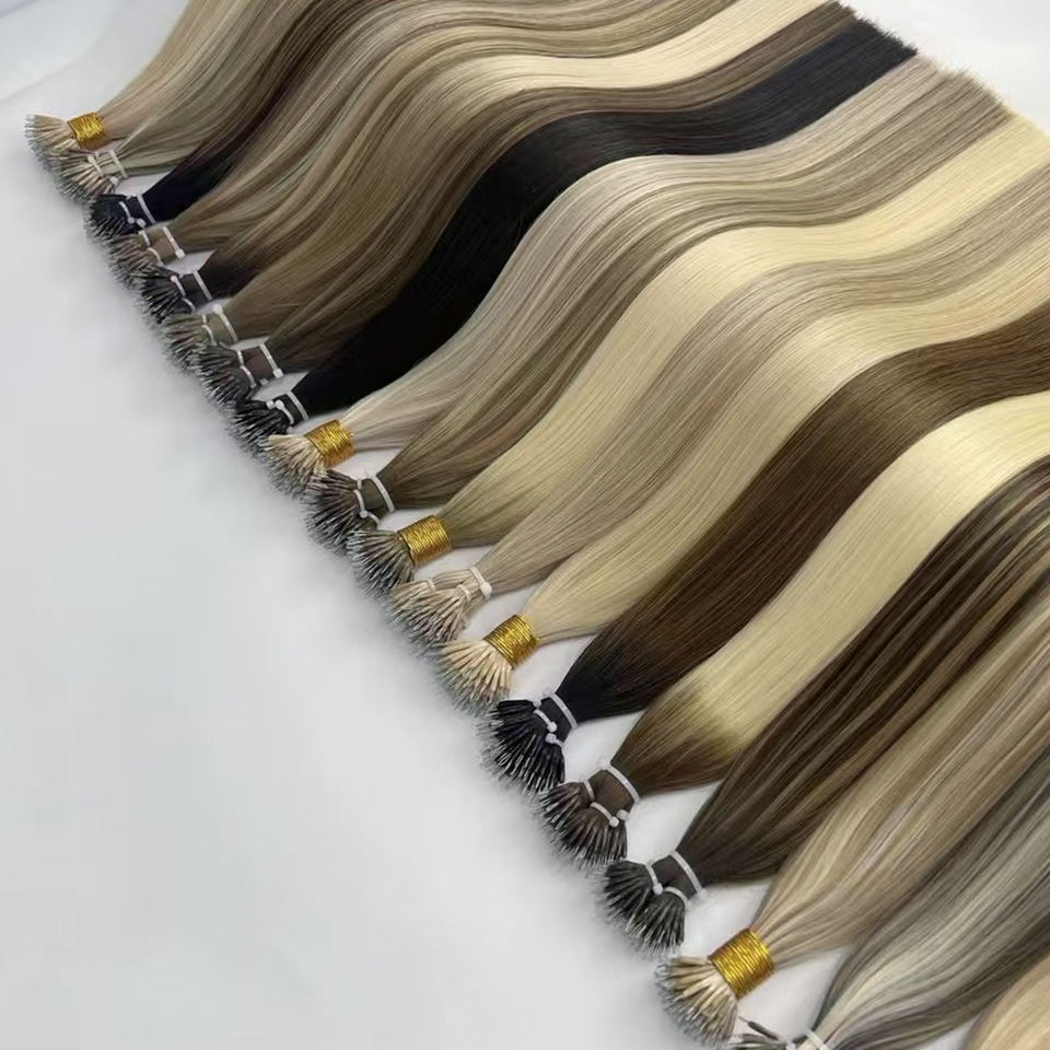 Extensioni per capelli Remy con micro anelli, punta nano, capelli umani vergini vietnamiti lisci biondi di alta qualità con anelli a maglia