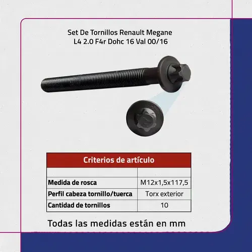 Set di Viti per Renault Megane L4 2.0 F4r Dohc 16 Val 00/16