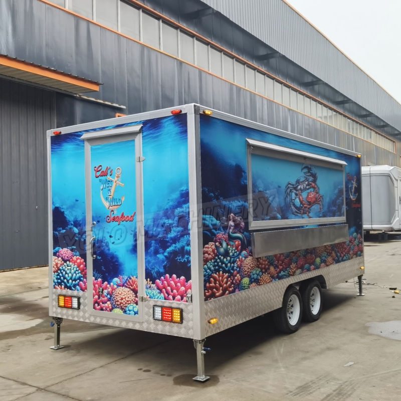 Rent Blue Mini Street Hotdog Cart Mobile Small Food Truck Trailer Cart with Full Kitchen Wheels Car Kiosk Coffee Shop Bakery