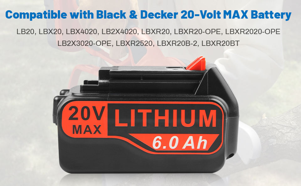 Sostituire per batteria nera e Decker 20V MAX LBXR20 6.0Ah batteria agli ioni di litio compatibile con strumenti Decker neri