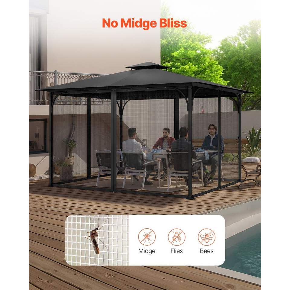 Rete di Ricambio per Gazebo 10 x 13 x 6,8 FT, Rete a 4 Pannelli Laterali per Giardino Esterno, Compatibile con la Maggior Parte dei Gazebo da Patio