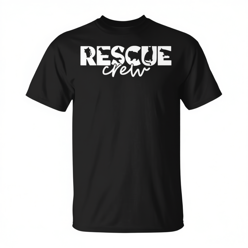 T-shirt Rescue Crew Cat Lover nera unisex per adulti, taglia media, girocollo, manica corta, promozionale