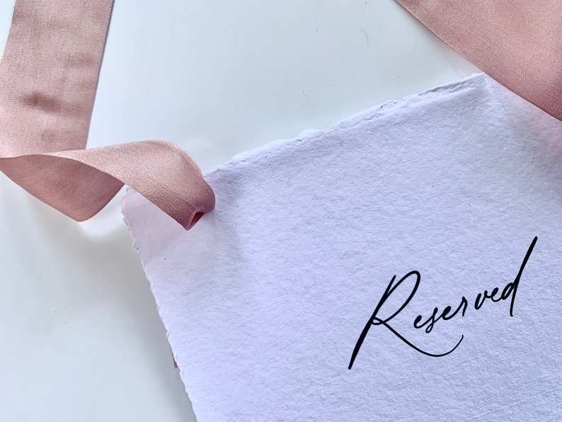 Reserved Wedding Sign - Hanging Sign With Silk Ribbon - Deckled Edge Handmade Paper