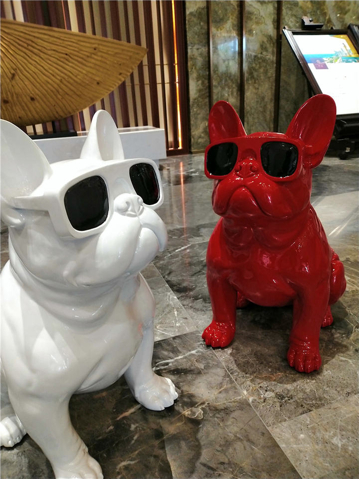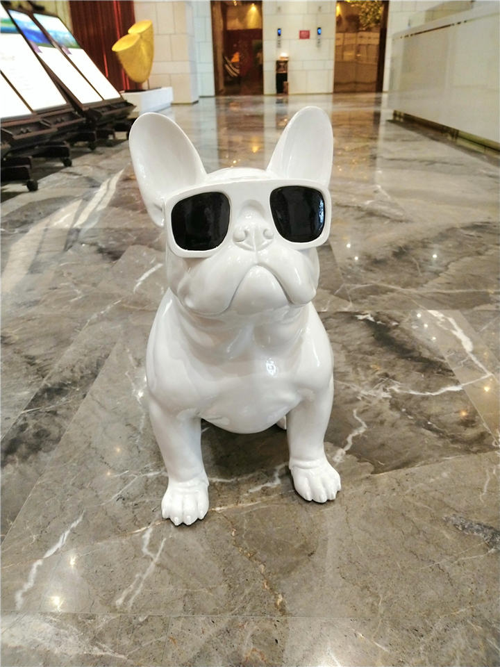 Cane in Ceramica Nera in Resina, Cane Personalizzato in Poliresina con Occhiali, Grande Bully Americano con Design alla Moda per Decorazione Domestica