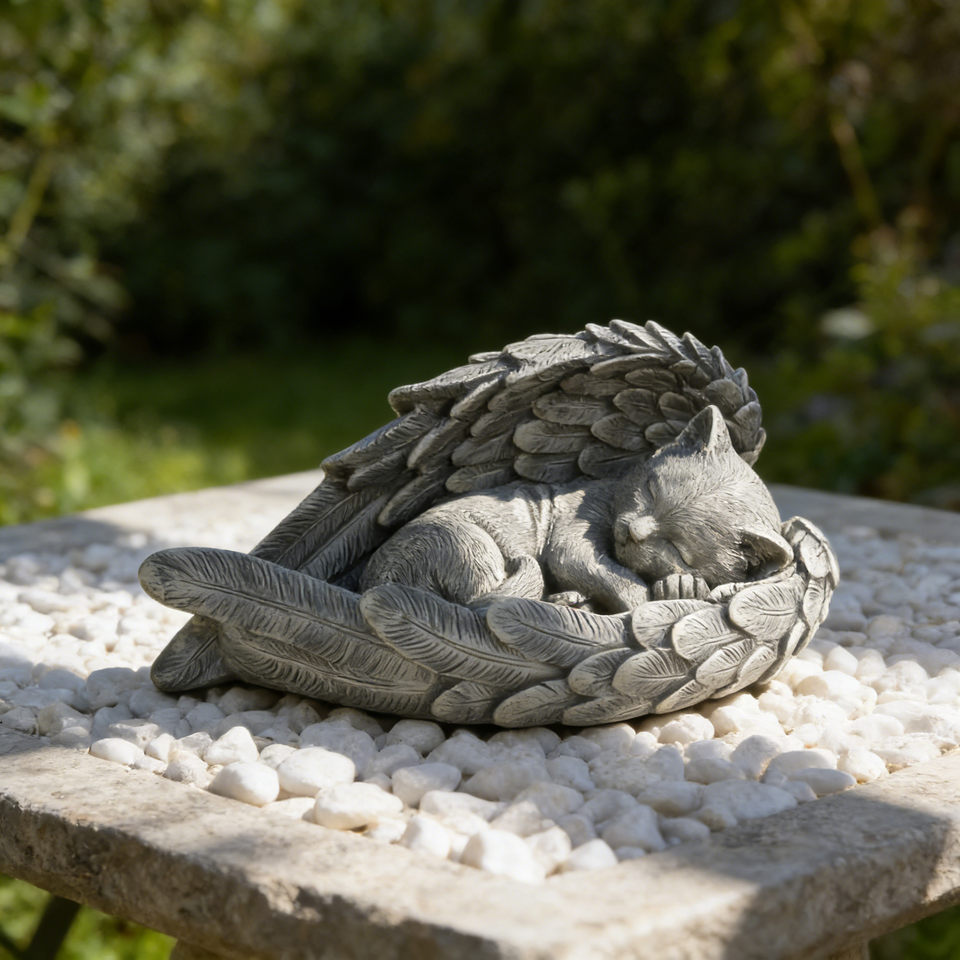 Resin Cat Memorial Angel Sculpture- Sleeping Kitten with Wings Design, Ideal for Garden Pet Grave Marker,Backyard Memorial Decor