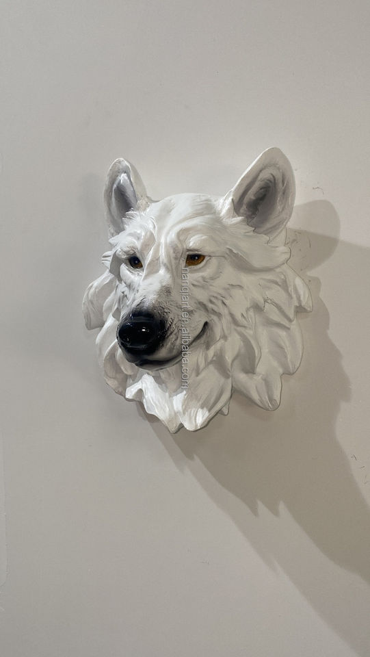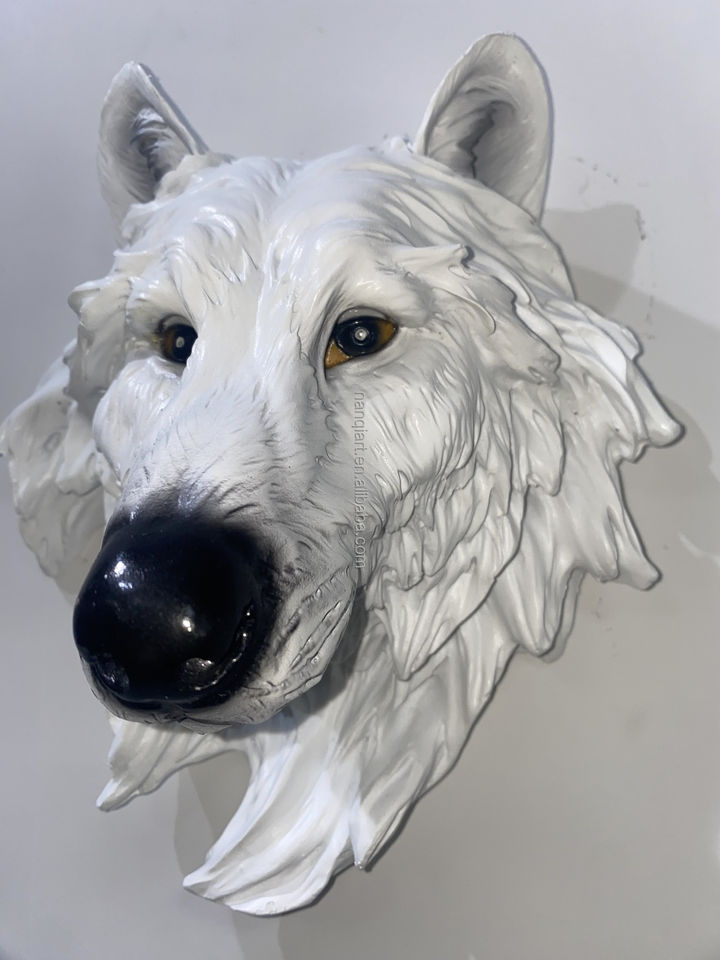 Artigianato in resina White Coppery Little Wolf Head Statue Interior Home Wall Hanging Resin Model Animal Small Wolf Head Statue