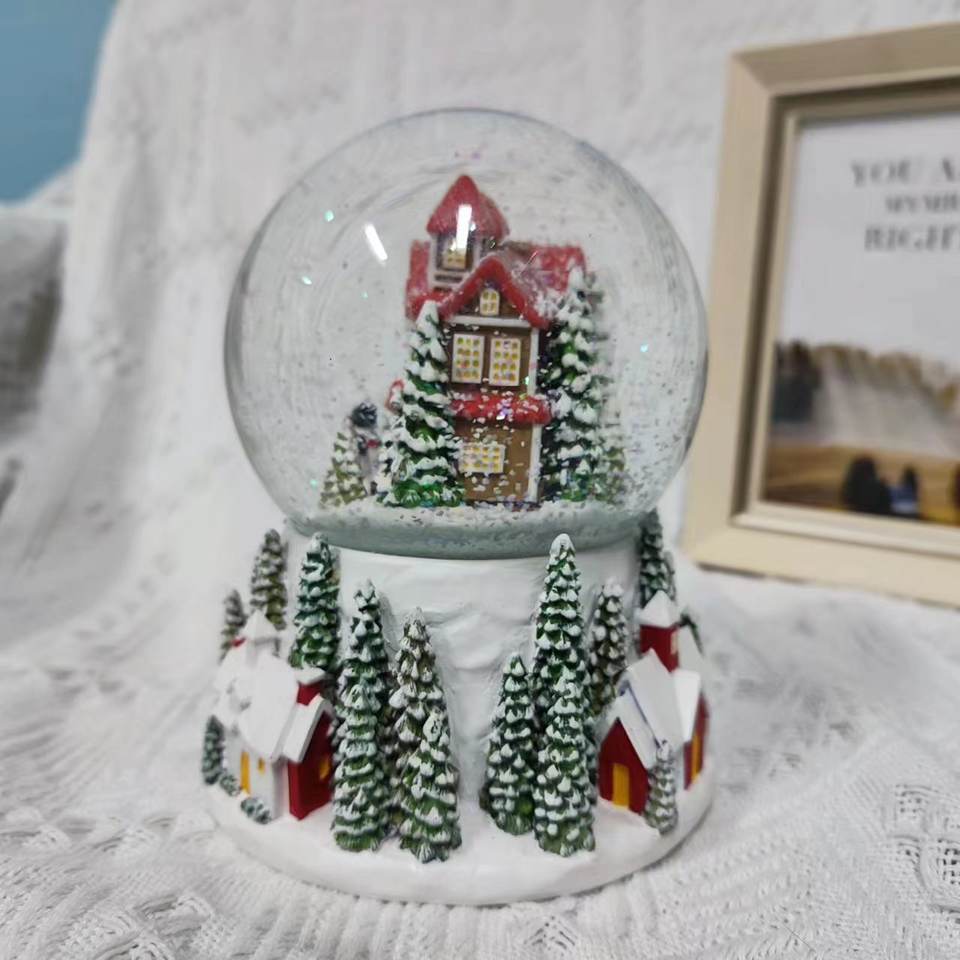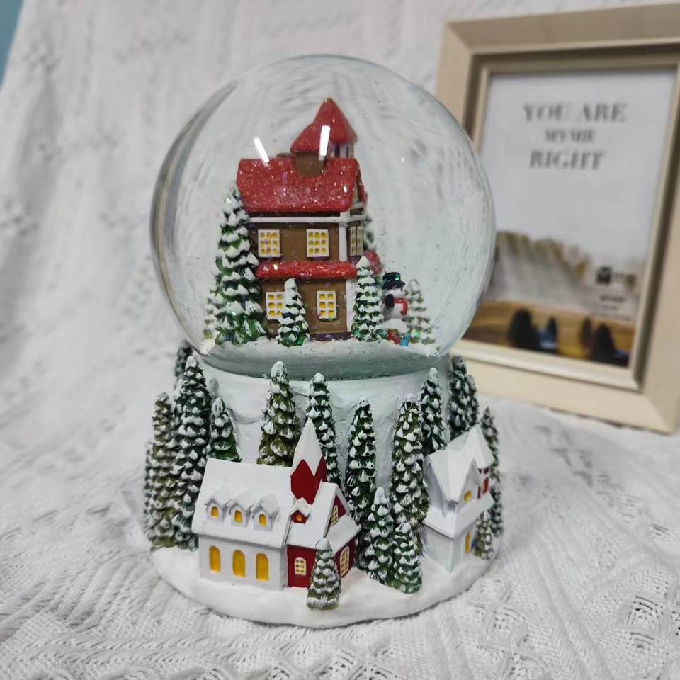 Resin Custom 110mm Christmas Snow Globe Glass Custom Snow Globe Christmas Village House Landscape Glass Snowball