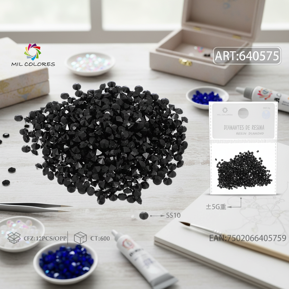 Resina argento fondo diamante SS10 5g nero '8' prodotto artigianale