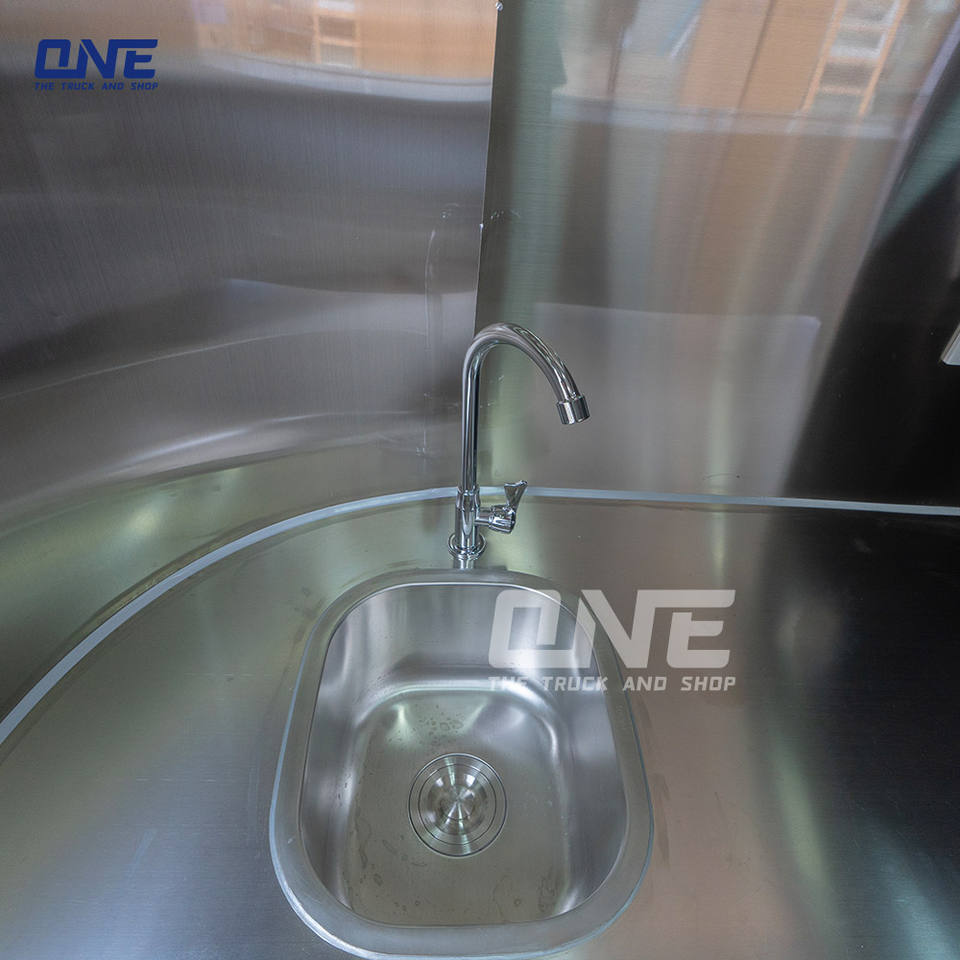 Food Truck in Alluminio per Ristorazione Completamente Attrezzato, Chiosco Mobile Prefabbricato per Sandwich, Taco e Caffè